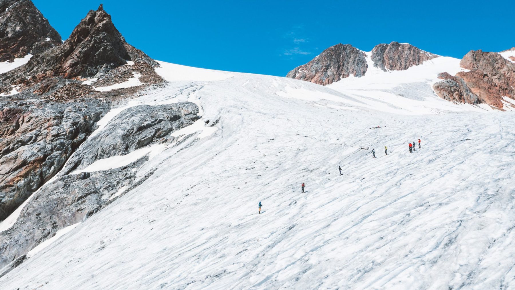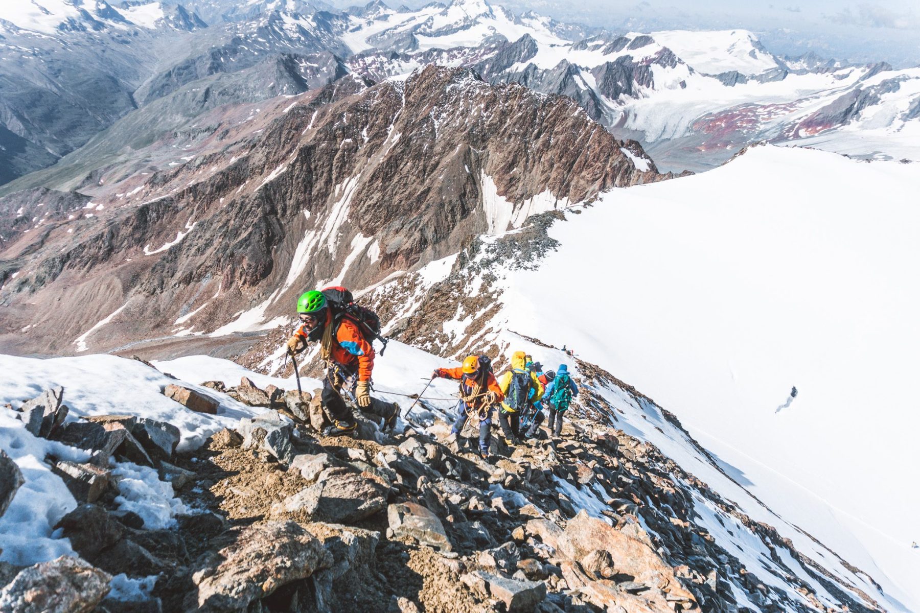 Elke NKBV C1 cursus staat garant voor een paar prachtige tochten. Zo ook die van ons. Met de kennis die we hebben opgedaan, mogen om en om verschillende groepsgenoten de groepen leiden. Op ons programma staat de 3500 meter hoge Fluchtkogel en de een na hoogste berg van Oostenrijk; de Wildspitze. Als één team lopen we gestaag over divers terrein, helpen we elkaar er door- en overheen en zorgen we dat we de top veilig halen en heelhuids weer terugkomen. Samen genieten van de prachtige uitzichten, het delen van een reep, veel plezier hebben en steeds meer kennis op doen. Dat is niet iets dat je zomaar leert, dat moet je meemaken.