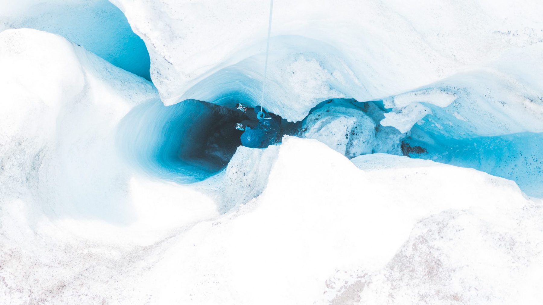 De knopen leer je natuurlijk niet voor niets, want het is ook echt tijd om alles in praktijk te brengen. Naast de Vernagthütte is een mooie oefenplek voor klimmen, abseilen, zekeren, standplaatsen bouwen en noem het maar op. Dat de bergsport zo divers was, wordt nu wel duidelijk. Maar naast rotsen, bestaat deze cursus ook uit ijs. En daarvoor moeten we de gletsjer op. Stijgijzers aan, touwen vast, pickel in de hand, getinte glazen voor de ogen en een flinke lik zonnebrand op het gezicht. De wind kan snijdend zijn en de zon uitermate fel. Al lopend komen we een gletsjerspleet tegen. Wie wil erin om eruit gered te worden is de vraag van een van de gidsen. Inge aarzelt geen moment en is binnen no-time zo diep in de gletsjerspleet dat ze niet meer te zien is.