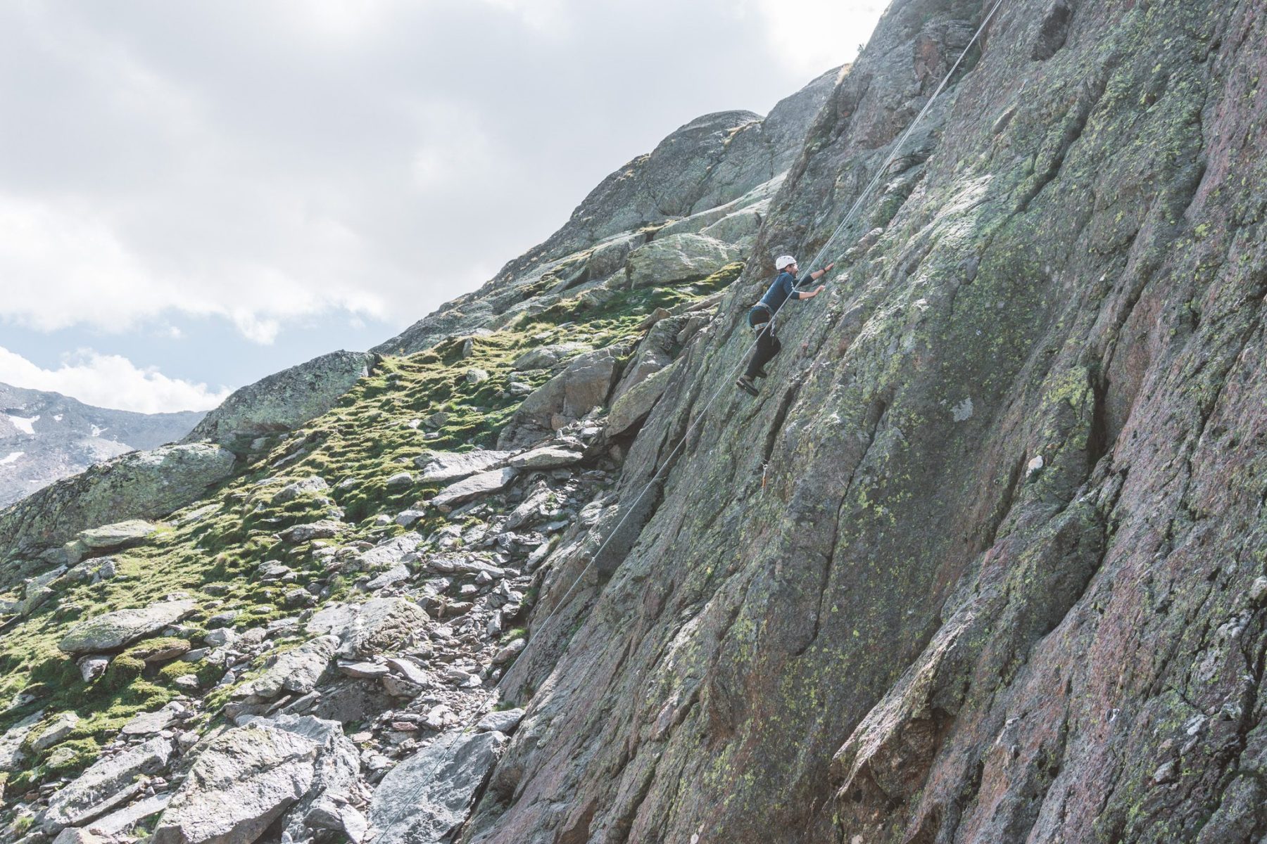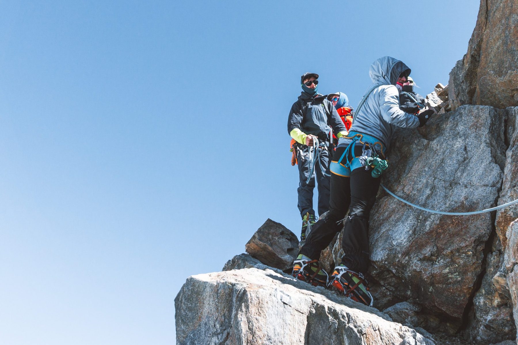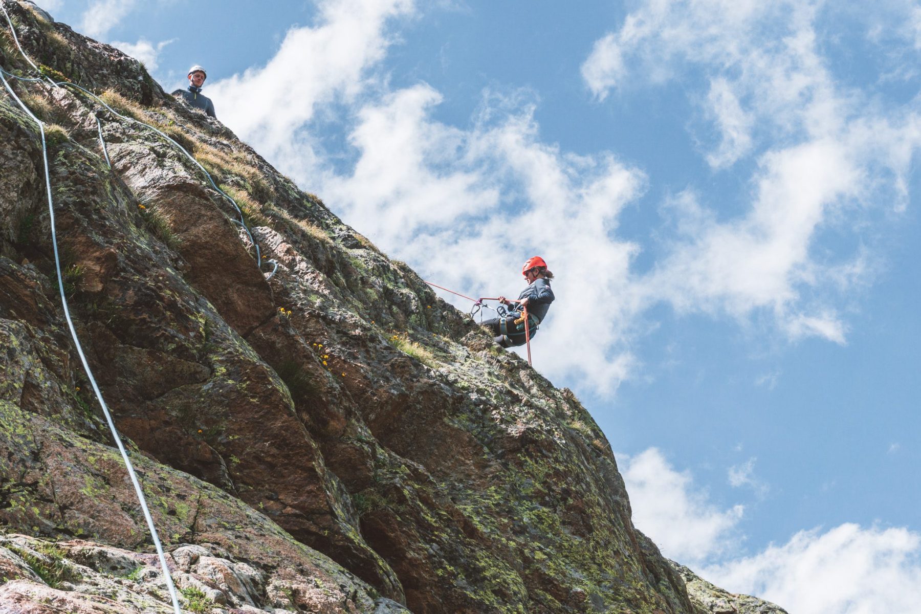 Veel bergwandelaars zullen niet heel bekend zijn met klimtouwen, knopen leggen en touwtechnieken. Daarom is het mooi om te zien dat er altijd wel wat klimmers in de groep zitten die de knopen blindelings leggen. Uiteraard krijg je voldoende uitleg over hoe je elke knoop moet leggen. Bij het avondeten zullen er voldoende groepsgenoten nog even meditatief bezig zijn met de prusikknoop, gestoken prusikknoop, zaksteek, achtknoop, gestoken acht, gardaknoop, halve mastworp en de hele mastworp. Je doet ze tijdens deze week zo vaak, dat je er soms letterlijk over gaat dromen. En dat is maar goed ook, want je leven hangt soms letterlijk aan een touwtje.