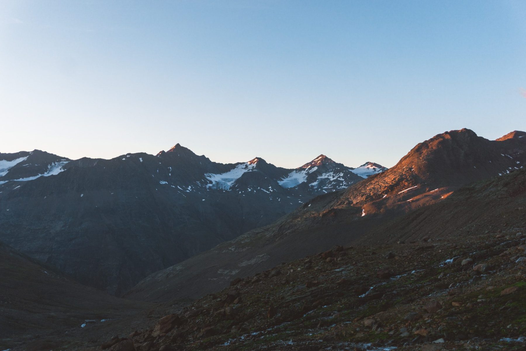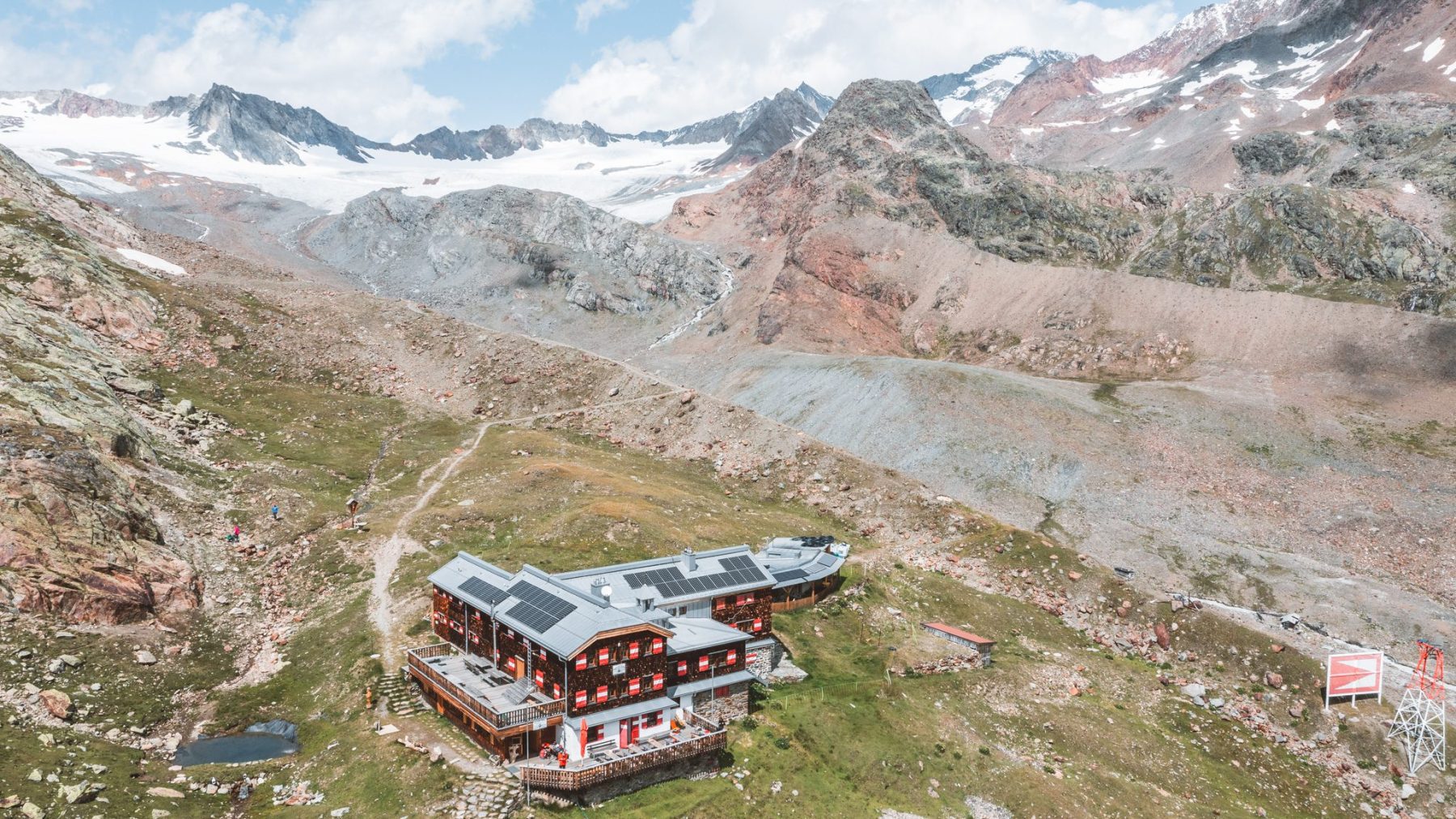 Nadat je het Ötztal helemaal uitspeelt, kom je aan bij het typische Oostenrijkse bergdorpje Vent. De eerste nacht verblijven we in Haus Eberhard en worden we voorbereid op de dagen die nog gaan komen. Outdoor-icoon Eberhard is een doorgewinterde alpinist, maar vindt het nu maar al te lekker om gastheer te zijn en spannende verhalen te vertellen. Verhalen over de uitrusting die we mee hebben en uitgeleend krijgen, maar ook over wat ons allemaal nog te wachten staat. En we boffen, want de Oostenrijkse weergoden zijn ons erg goed gestemd. De weken ervoor was het koud en veel neerslag gevallen.