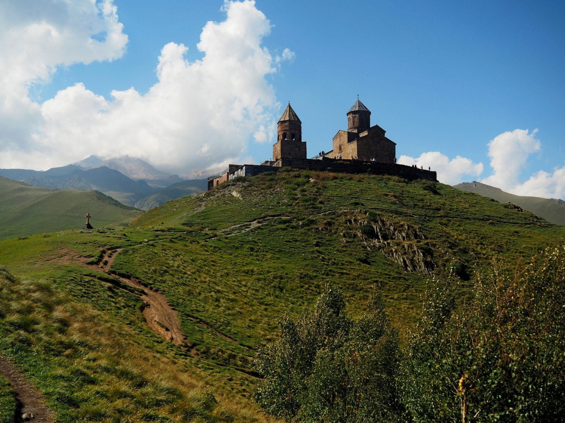 Wat je ook kunt doen, als je iets relaxter wilt wandelen in Georgië, is de tocht opknippen in twee dagen. Je kan dan op dag 1 voorbij de Gergeti gletsjer wandelen naar de Bethlemi hut. Daar kun je dan overnachten (vooraf reserveren), zodat je een dag later met nieuwe energie aan de terugweg kunt beginnen.