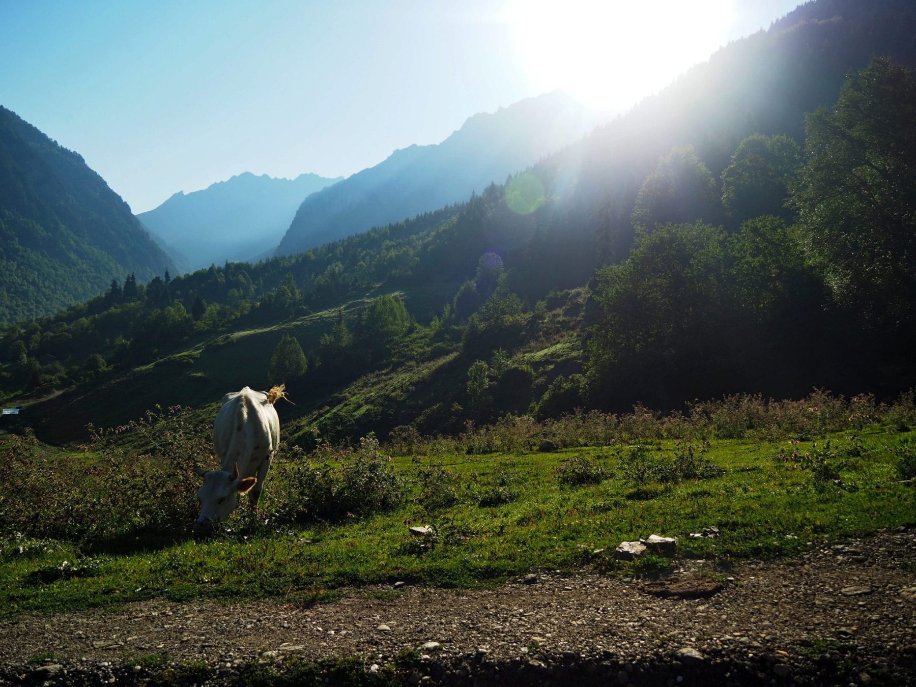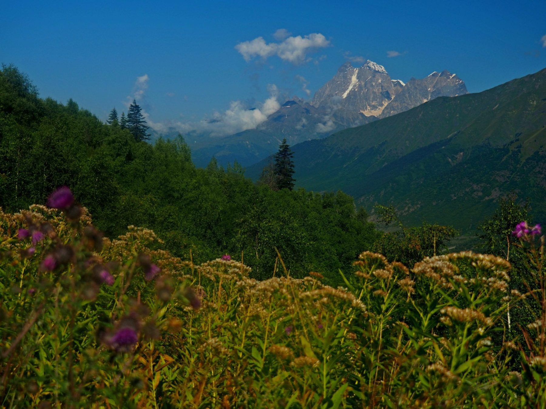 Als je gaat wandelen in Georgië is de kans groot dat je bij deze 4-daagse tocht in het Svaneti gebied uitkomt. Het is namelijk een van de meest populaire tracks in heel Georgië. Dat komt omdat de afstanden voor iedereen goed te doen zijn. De hike start in het dorp Mestia, loopt via de dorpen Zhabeshi, Adishi en Iprali naar Ushguli. De maximale afstand per dag is 17 km, de maximale hoogtemeters 900 meter en de gemiddelde wandelaar doet er per dag ongeveer 6 uur over. Ik ga er dan vanuit dat je onderweg een aantal keer pauzeert om te genieten van de besneeuwde bergtoppen, gletsjers, groene bossen, bloemenvelden en loslopende koeien. Want je loopt vier dagen lang door prachtige natuur.