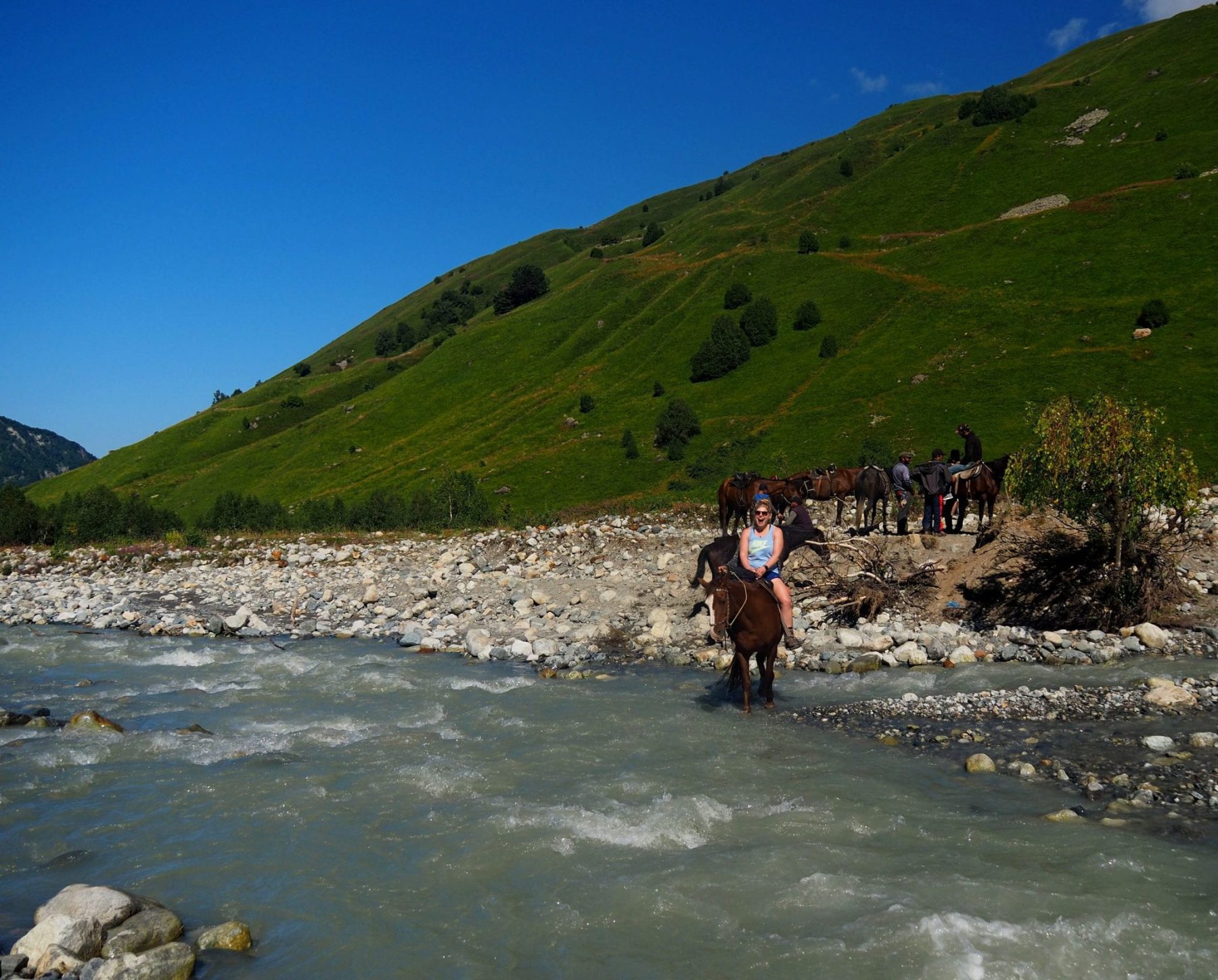 Op de derde dag van deze meerdaagse trekking moet je een rivier oversteken waar geen brug is. Er zijn dan twee opties: of heel vroeg vertrekken en met blote voeten door het ijskoude gletsjerwater, of jezelf per paard naar de overkant laten brengen. In de zomer kan het erg druk zijn op deze trekking, desondanks is het vooraf boeken van een accommodatie (nog) niet noodzakelijk. Alleen in het dorpje Iprali kan het lastig zijn om een guesthouse te vinden. Gelukkig zijn er net vóór en net ná dit dorpje ook guesthouses te vinden. Ushguli is de eindbestemming, maar als je nog de tijd (en energie) hebt, is het een aanrader om hier nog een nacht te blijven en de volgende dag naar de Shkrara gletsjer te hiken.