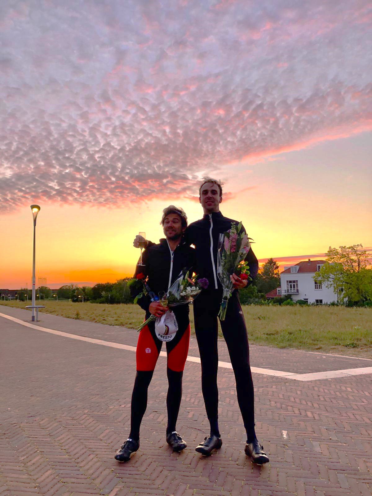 Nog 50 km te gaan. Het terrein voelt nu als thuiskomen. We naderen de Posbank, een van onze favoriete trainingsrondjes. Het kon nu niet meer mis gaan, ons einddoel binnen handbereik. De vermoeidheid en pijntjes verdwenen als sneeuw voor de zon en tijdens āgolden hourā vliegen we de laatste klimmetjes omhoog. Euforisch fietsen we te midden van anders wielrenners die bezig zijn met hun dagelijkse rondje met een onwerkelijk gevoel richting onze vrienden en familie die ons staan op te wachten bij ons startpunt, de Waalbrug in Nijmegen.