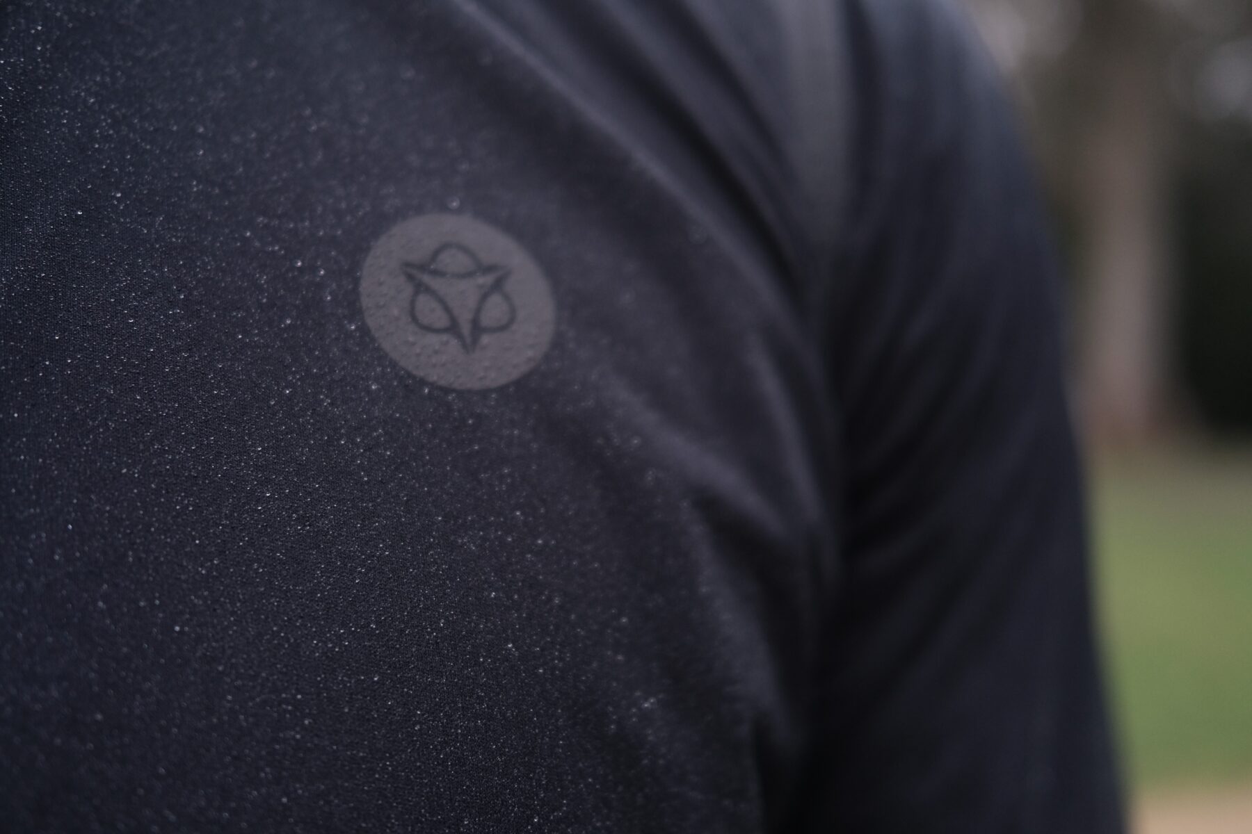 De grootste test voor het shirt is het ademend vermogen in combinatie met zijn waterdichtheid. Met een ademend vermogen van 30.000 g/m2/24u en een waterkolom van 8.000 mm belooft het veel goeds. Reden voor ons om de proef op de som te nemen. Tijdens de testrit was het 12°C, regende het licht en werd afwisselend met een hoge en lage intensiteit gefietst. Wat opvalt is dat de jersey, in tegenstelling tot een regenjack, het vocht inderdaad beter afvoert. Bij hoge intensiteit kun je merken dat het wat minder goed ademt dan een normale jersey, maar het broeierige gevoel van een regenjack zonder ademend vermogen, achterwegen blijft. Ook houd het de regen goed buiten, waardoor het lichaam op temperatuur blijft. De jersey heeft korte mouwen, wat vooral op de warmere dagen lekker is. Op koudere ochtenden kun je het shirt prima combineren met armstukken die je later op de dag weer af kunt doen.