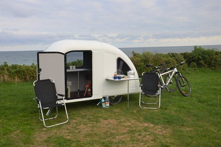 Het Deense bedrijf Wide Path Camper heeft in onze ogen een pareltje ontworpen. Een aanhanger die je zonder enige moeite achter je fiets kan hangen om er vervolgens op uit te trekken. Het is een vrij compact ding, maar dat kan ook niet anders voor een fietscamper. Slechts anderhalve meter lang, zodat je er weinig last van hebt op de fiets. Aangekomen op de plaats van bestemming? Lekker gewerkt, dan klap je hem uit en heb je jouw eigen mobile home van 2,3 meter lang!