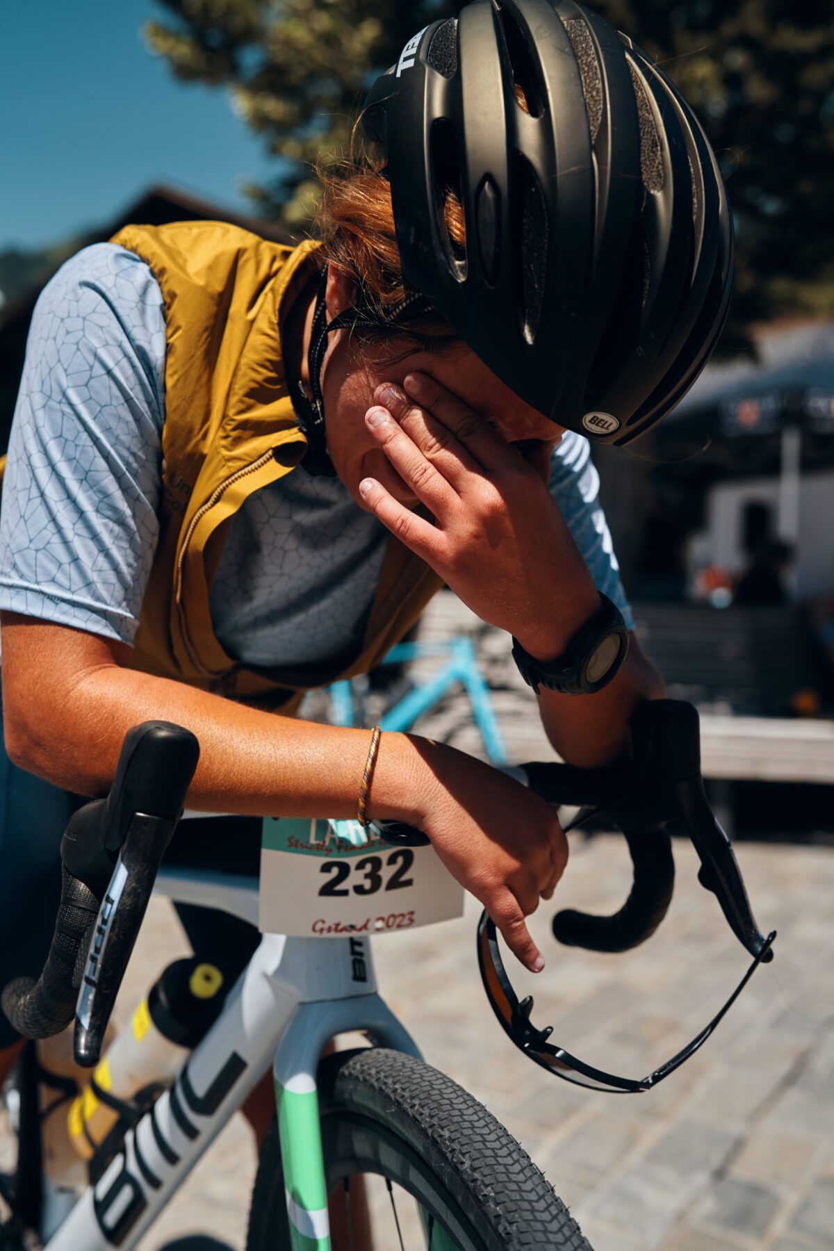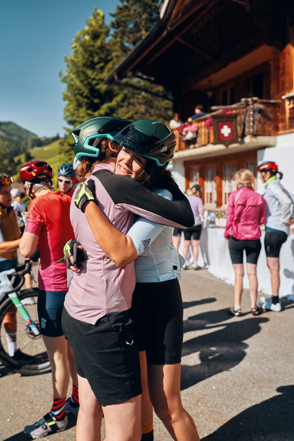 Als we enkele kilometers voor de finish fietsen komt de wind vol op kop. Mijn nieuwe Zwitserse buddy kijkt me vertwijfeld aan, maar een wedstrijdje tegenwind fietsen over vlak terrein, dat kan deze Hollander en ik neem weer de lead. Ietwat verdwaasd bereiken we de finish midden in Gstaad. Behalve een fotograaf die zijn camera nog aan het opstellen is, is het rustig. Geen finishbiertje, geen tent met muziek. Maar als de racetracker door een lieve dame van mijn fiets wordt geknipt ben ik toch overtuigd: we hebben het gehaald. We geven elkaar een intense knuffel en fietsen vijf bonuskilometers terug de berg op naar het hotel. De organisatie blijkt achteraf onze komst nog niet verwacht te hebben, er werd nog opgebouwd.