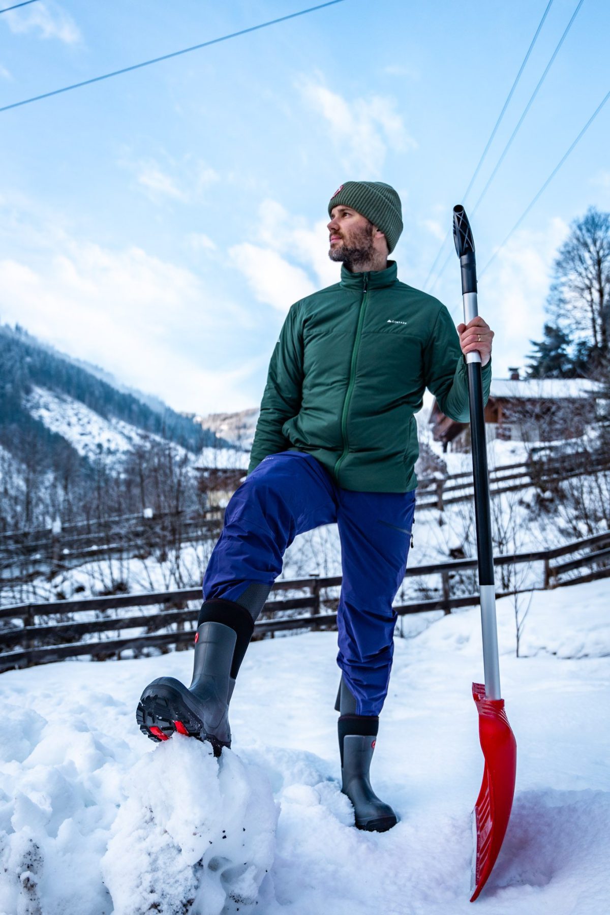 We nemen de Dunlop Snugboot Craftsman mee naar ons huis in Oostenrijk, waarbij we meteen goed kunnen testen of ze warm, waterdicht en ademend zijn en veel grip hebben. Zodra we ze uit de doos halen, merken we meteen dat je te maken hebt met een serieuze laars. Hij is niet extreem zwaar, maar wel iets zwaarder dan we gewend zijn van bijvoorbeeld wandelschoenen. We schieten de laarzen aan en voelen dat de laars zich werkelijk naar je voet vormt. De pasvorm is heel lekker en hij loopt in eerste instantie heel erg lekker. De eerste indruk is dus erg aangenaam.