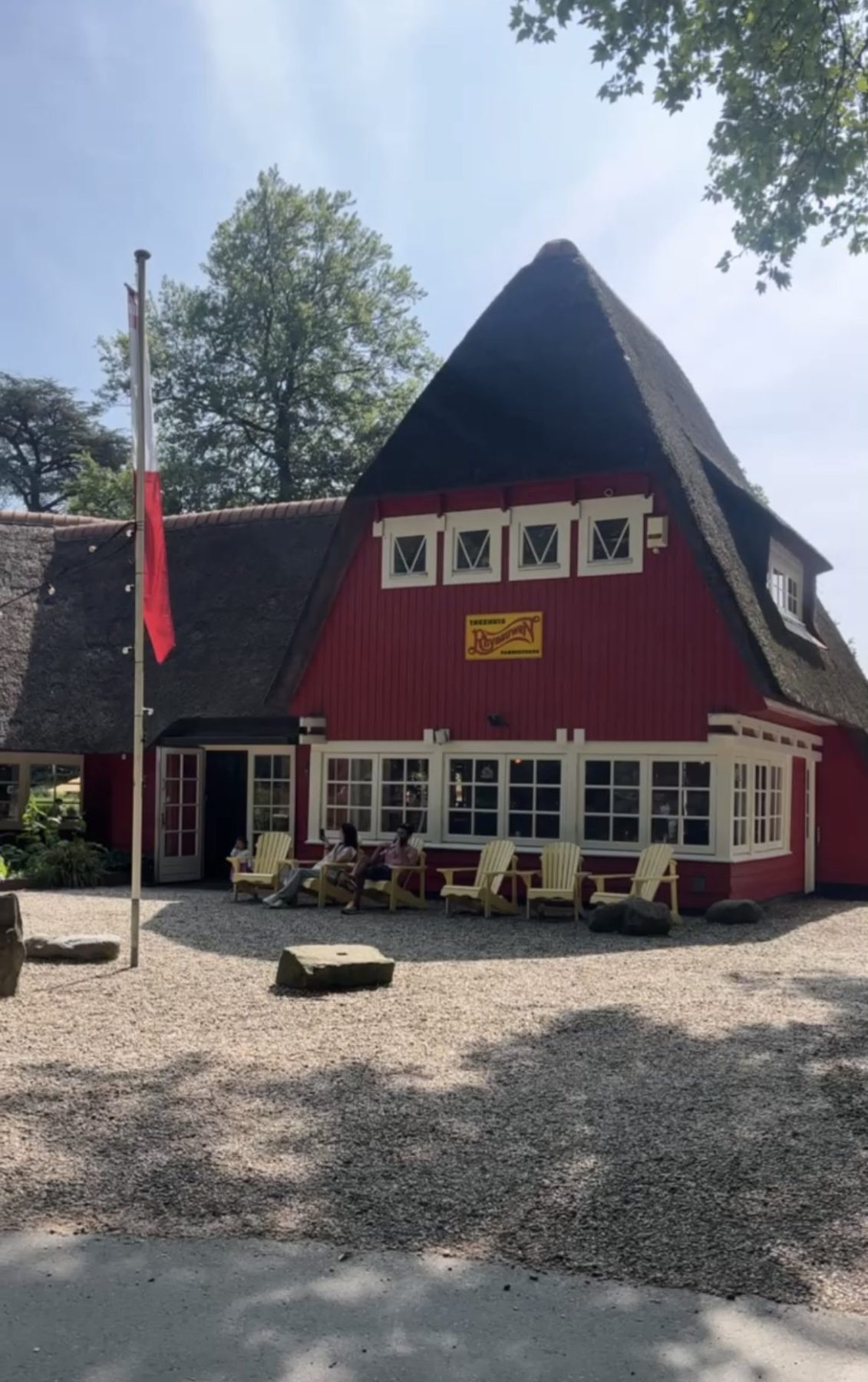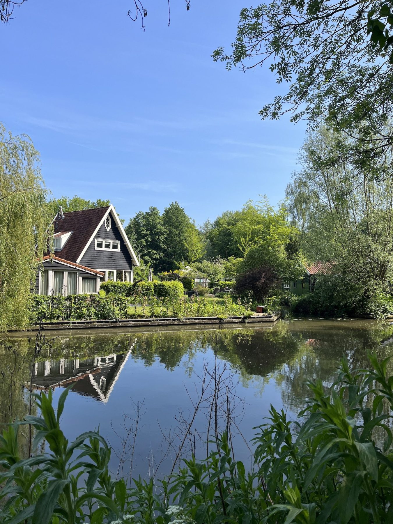 Een welbekende stop onder Utrechters (je kunt hier zelfs aanmeren met je kano) en een perfecte stop op het Utrechtpad is Theehuis Rhijnauwen. Met mooi weer kun je hier in de prachtige tuin lunchen, zowel in de schaduw als lekker in het zonnetje bij het water. Ook al was het nog maar begin mei, ik begon mijn tocht al met 25 graden ’s ochtends. Dus je raadt het al, ik plofte lekker neer in een schommelstoel op de veranda in de schaduw. Ondanks dat ik mijn eigen lunch had ingepakt kon ik de geur van de verse pannenkoeken niet weerstaan en rekte ik mijn eerste pauze iets uit in de comfortabele schommelstoel. Ach, die meegenomen lunch komt vast morgen nog van pas.