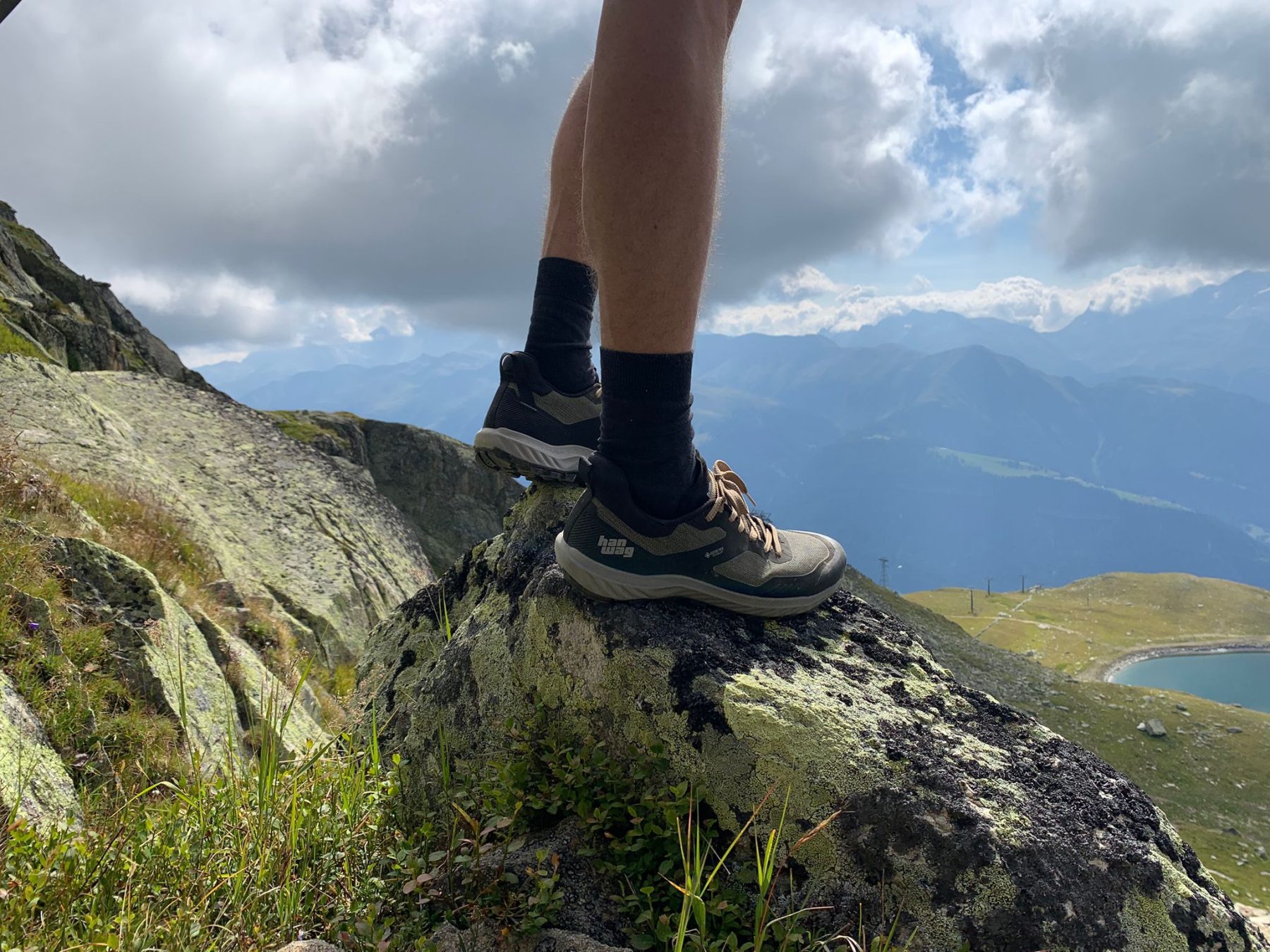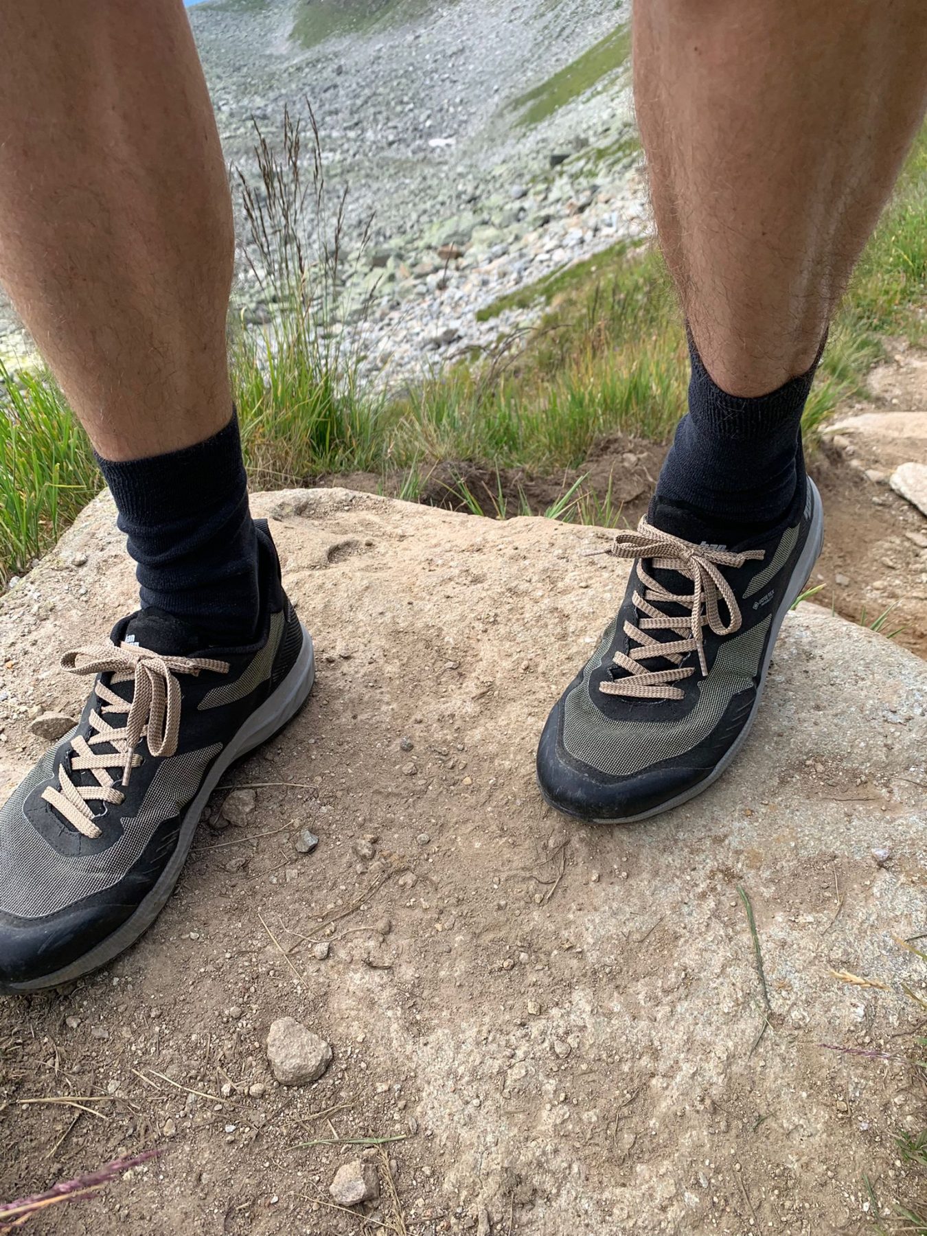 Bovenop de Eggishorn is het tijd voor een lekkere picknick en een lekkere kop koffie in het restaurant net onder de top. Daarna is het tijd voor de lange afdaling aan de oostkant van de bergtop langs de Märjelensee en over de Aspi-Titter Hangbrug. Het is een warme dag met een strak blauwe lucht, een felle zon en ongeveer 30 graden. Met veel trail- en bergschoenen zorgt dit ervoor dat mijn voeten flink gaan zweten en de geur rond mijn voeten niet altijd aangenaam is. Echter het GORE-TEX membraan van deze schoen is enorm ademend waardoor ik nauwelijks zweet- en geurende voeten heb. Dit is voor mij persoonlijk een onverwacht, maar groot voordeel van deze schoenen.