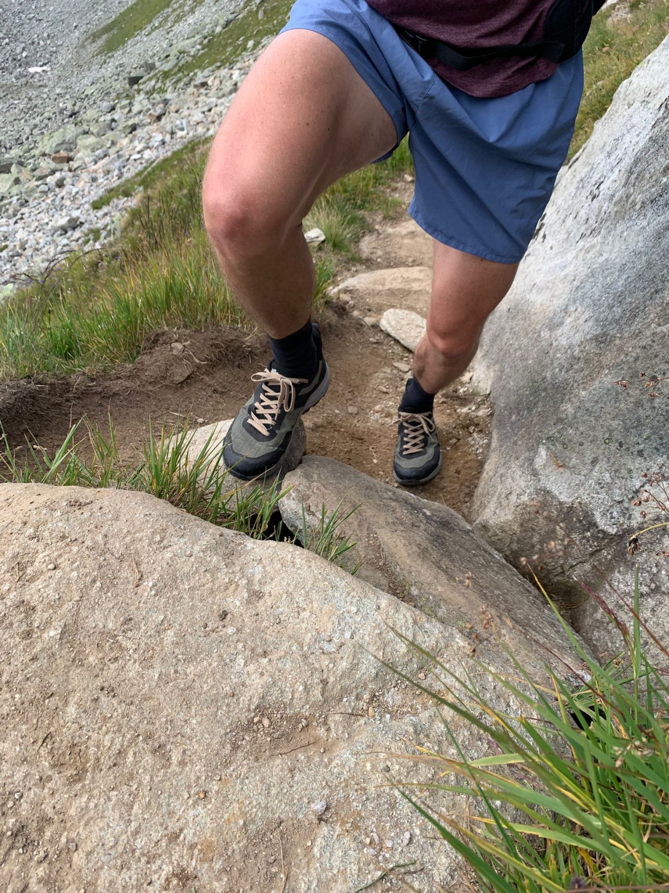 Tijdens de lange afdaling naar beneden is de comfortabele demping goed te voelen. Bij de stappen naar beneden is duidelijk waarom Hanwag de demping van de schoen promoot. Het is goed te voelen hoe de zool mee veert en de impact van de zware stappen verlaagt. Overdreven gezegd is het bijna alsof je met blote voeten over gras loopt. Ook in dit gedeelte van de hike voelt de wandelschoen stevig maar comfortabel aan.