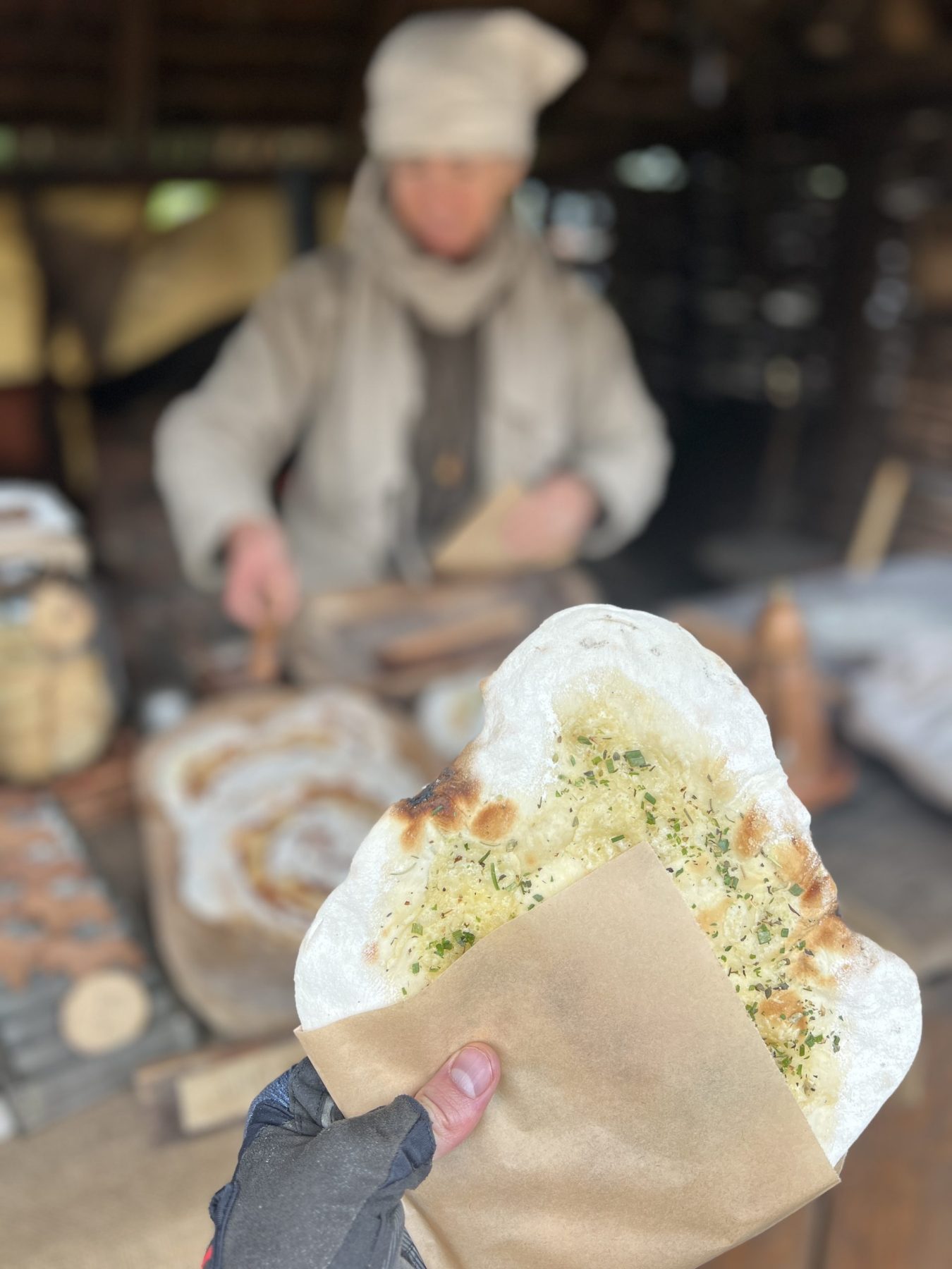 Eerste stop: de Wolin Observation Tower, met panoramisch uitzicht over het Zalew Szczeciński (de Szczecin-lagune) en het uitwaaierende Świna-deltagebied. Daarna stapten we terug in de tijd in het Slavs and Vikings’ Center, genaamd Jomsborg–Vineta. Dit openluchtmuseum is een levend Vikingdorp. Denk aan houten huizen, vuren waar pretzels op middeleeuwse wijze worden gebakken, mensen die sokken breien en zwaarden smeden. De gids vertelde dat zelfs Epic Games hier 3D-scans maakte voor games en digitale archieven.