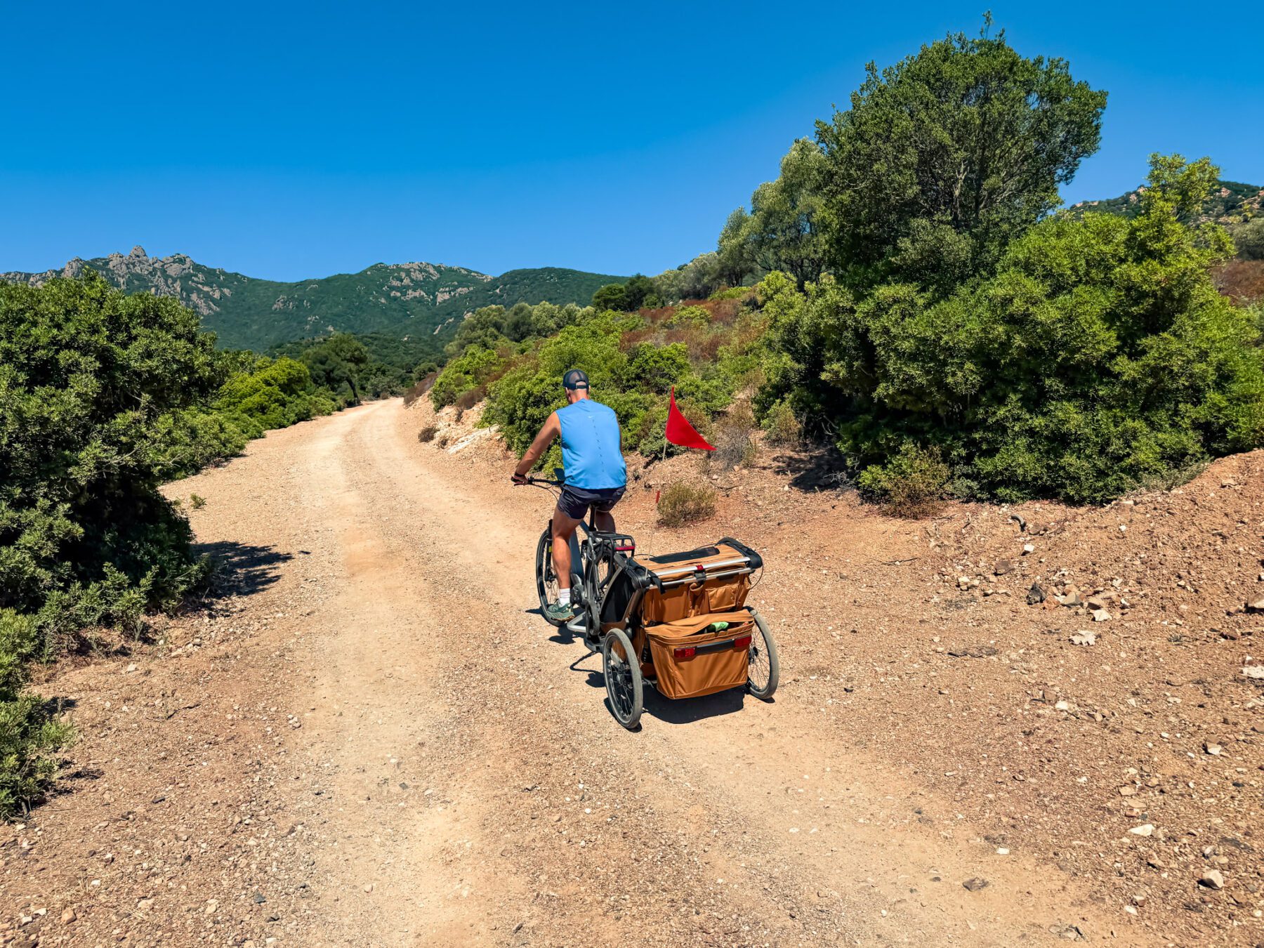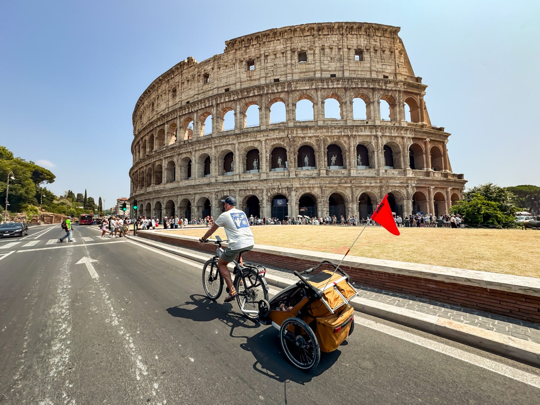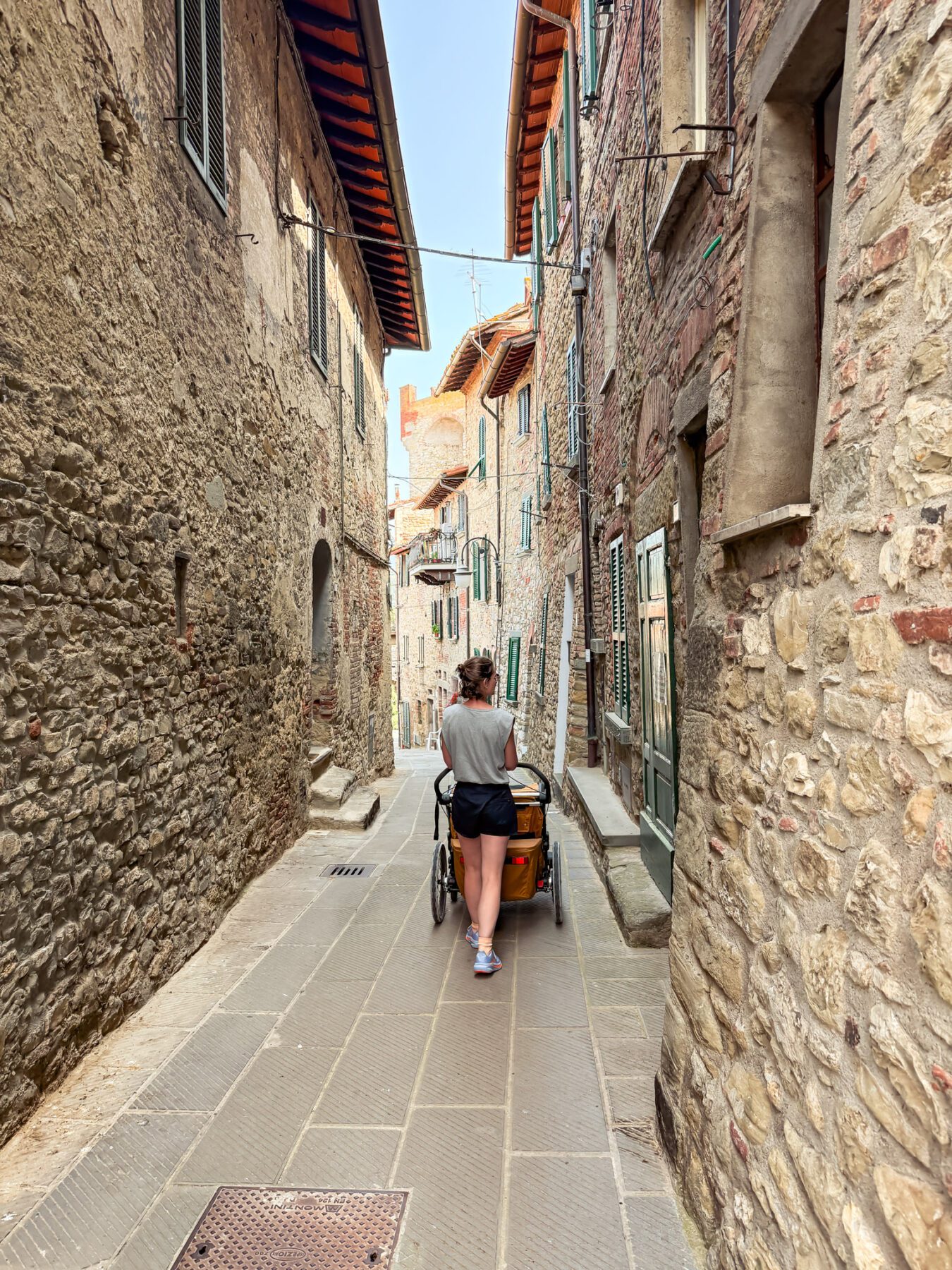 Voor wandelen draai je de voorwielen 180 graden en koppel je de fietskar af. Letterlijk binnen een handomdraai ga je van fietsavontuur naar een wandelavontuur. In Nederland sta je er vaak niet bij stil, maar in Zuid-Europa vond ik de schijfremmen echt een onderscheidend punt. Niet omdat je elke meter remt, maar omdat je op momenten dat het nodig is meteen controle hebt. Denk aan een steile helling of een bruggetje. En ook bij het wandelen geldt dat het formaat in steden niet altijd even praktisch is.