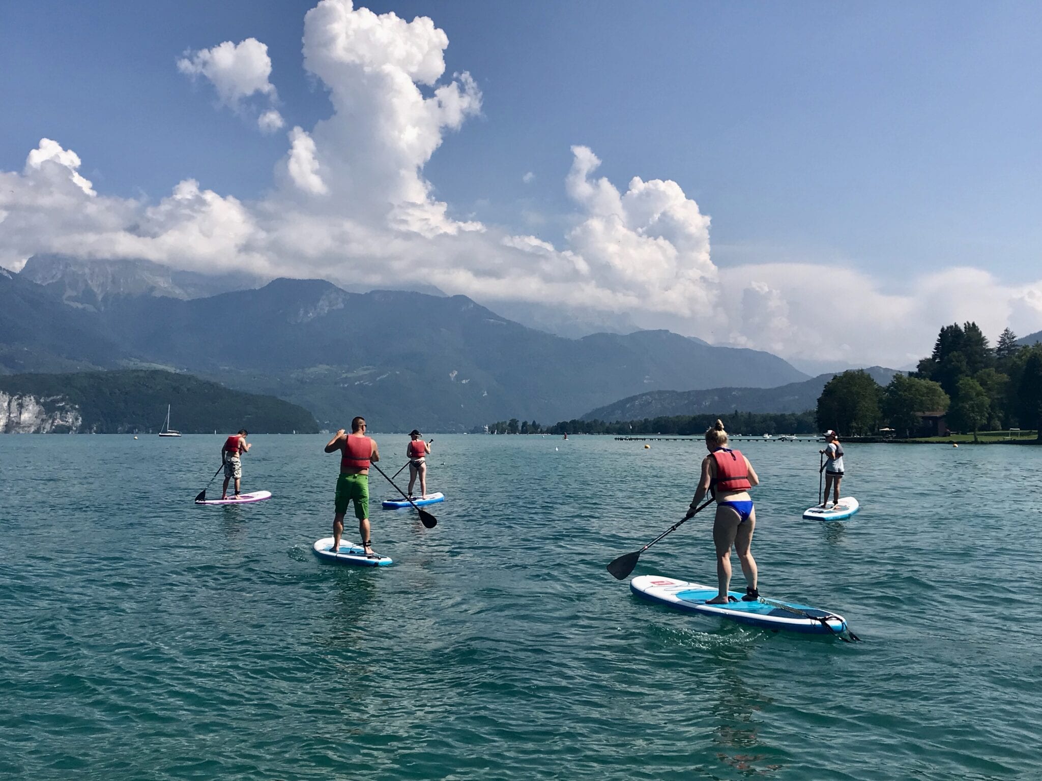 Hou je niet van zonnebaden op een bedje? Des te beter! Er zijn verschillende watersporten uit te oefenen op het meer. Van rustig tot zeer actief, dus voor ieder wat wils. Wij probeerden het SUP-pen (Stand Up Paddling) bij het NCY SUP Center, wat heerlijk was. Het water was zo lekker verkoelend, dat het absoluut geen straf was om af en toe van je plank te ‘vallen’, daarnaast hadden we genoeg tijd om rond te kijken naar het uitzicht op de Annecy Mountains en de andere watersporters. Zo zagen we mensen kitesurfen, windsurfen, zeilen, roeien en waterfietsen, en natuurlijk ook gewoon zwemmen.