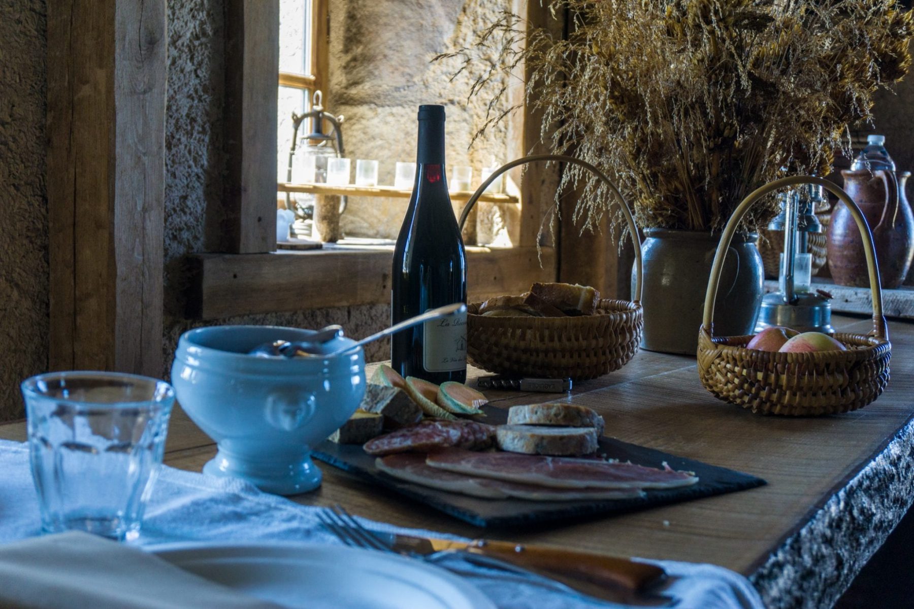 Een overnachting in Buron de Bâne kost 95 euro per persoon. Dat is inclusief ontbijt en avondeten. Beide maaltijden staan op je te wachten in rieten picknickmanden en een koelbox. De gerechten worden vooraf in het hotel bereid met verse producten, die ook afgekoeld nog lekker smaken. Uiteraard is ook de wijn verzorgd. Sterker nog: in Buron de Bâne drink je een rode wijn die speciaal voor deze plek is gemaakt en die je alleen hier kunt drinken.