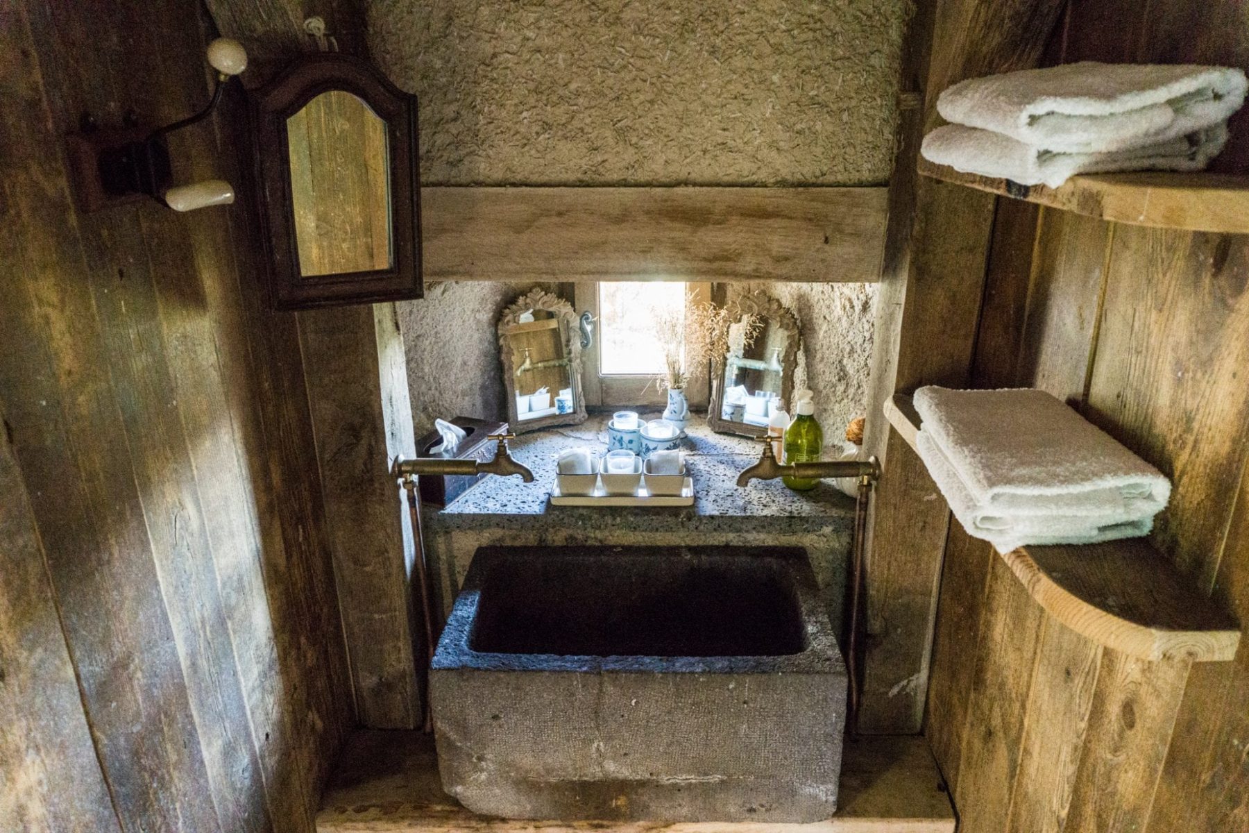 De locatie bestaat uit vijf items. Het stenen hoofdgebouw met daarin de ruime keuken, grote eettafel en ruime zithoek met open haard. Daarnaast staat een iets kleiner, maar nog steeds ruim, stenen gebouwtje. Hier vind je een toilet, wastafel en zelfs een grote douche. Je moet alleen de ketel zelf opstoken met hout, maar dan heb je een half uurtje later een heerlijk warme douche. Verderop, in de tuin, staan nog drie houten hutjes. Vroeger stonden deze hutjes op twee wielen en werden ze door de herders over de berg gereden om ’s nachts in te slapen. Tegenwoordig zijn het de knusse, tweepersoons slaapcabines voor de gasten van Buron de Bâne.