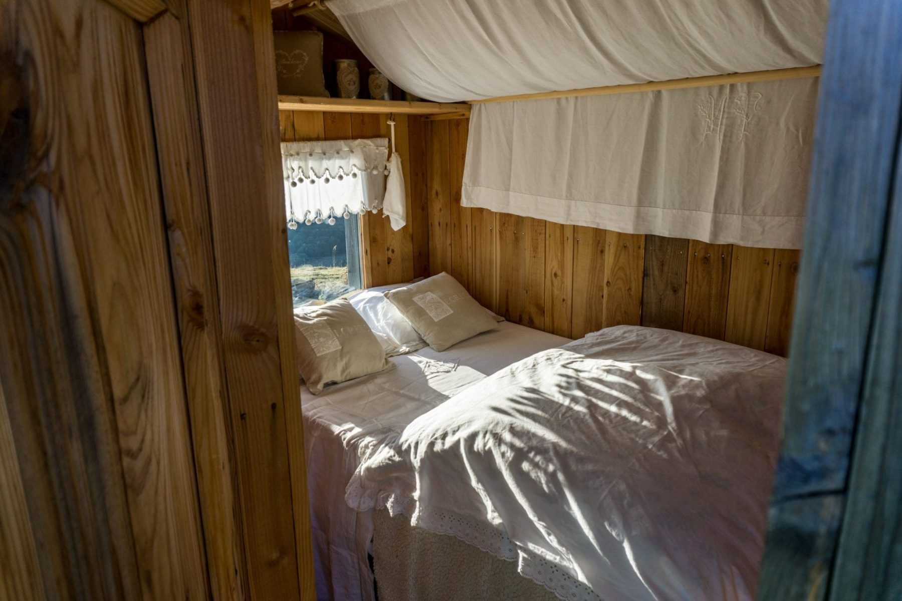 Hadden we al verteld dat het uitzicht en de zonsondergang vanuit Buron de Bâne magnifiek is? Maar ook als het eenmaal donker is, is dit een heerlijke plek. De locatie is van alle gemakken voorzien. Er is water, schoon beddengoed, sanitair, etc. Het enige dat er niet is, is elektriciteit. Er zijn dus geen stopcontacten of lampen. Maar dat maakt deze plek juist nog sfeervoller en romantischer. Je mag namelijk de vele kaarsen en lantaarns aansteken die overal voor je klaar staan. Zelfs als je naar het toilet gaat of nog even een douche neemt voor het slapengaan wordt je vergezeld door kaarslicht.