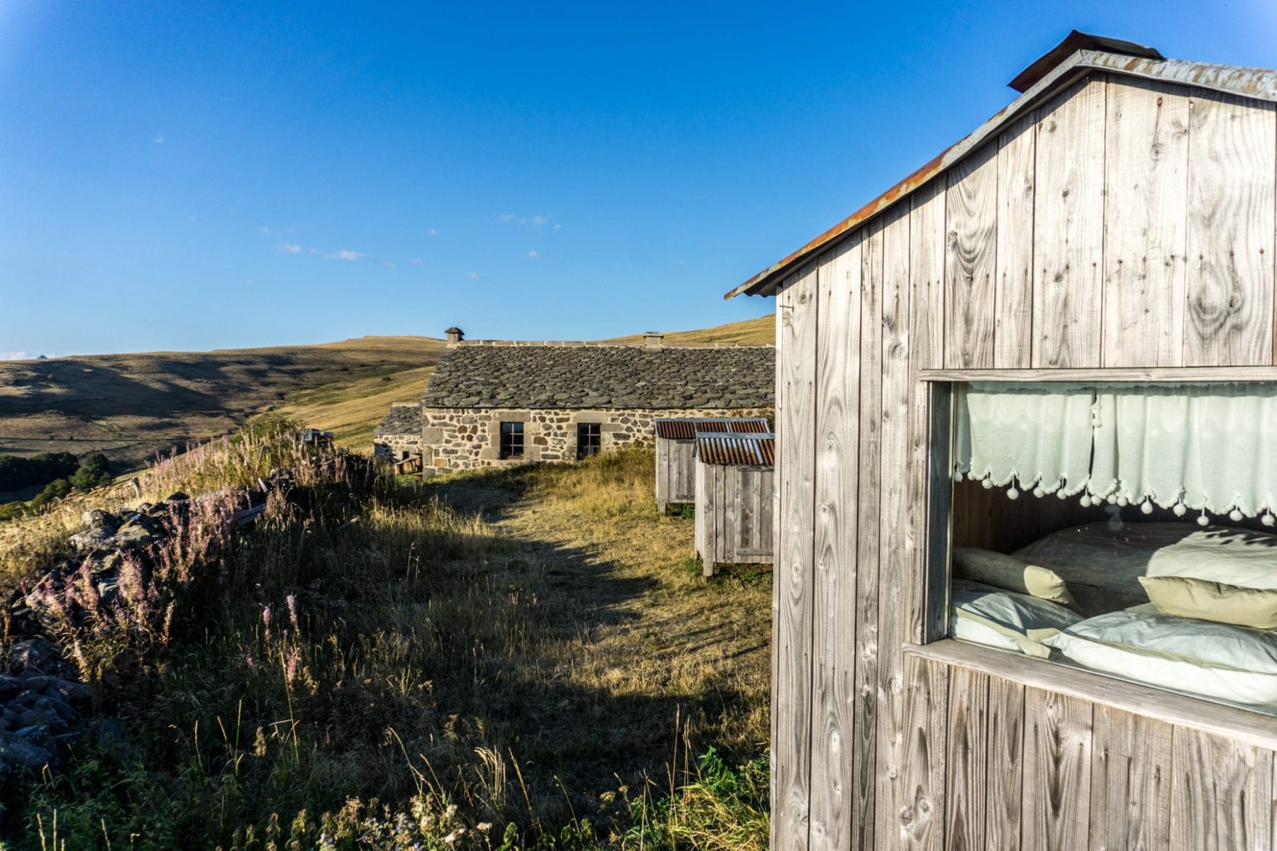 Buron de Bâne is een traditionele herdershut in het Franse Auvergne. De locatie is onderdeel van Auberge des Montagnes Dit hotel en restaurant van de familie Combourieu ligt in het kleine dorpje Pailherols. Op zo’n twee uur lopen van het hotel (7 km, bergop) vind je de voormalige herderswoning van de overgrootouders van de familie. Deze fantastische plek is recent omgetoverd tot een authentiek toevluchtsoord. Een ware hidden gem, gelegen midden in de weilanden op de heuvels van Puy de Bâne.