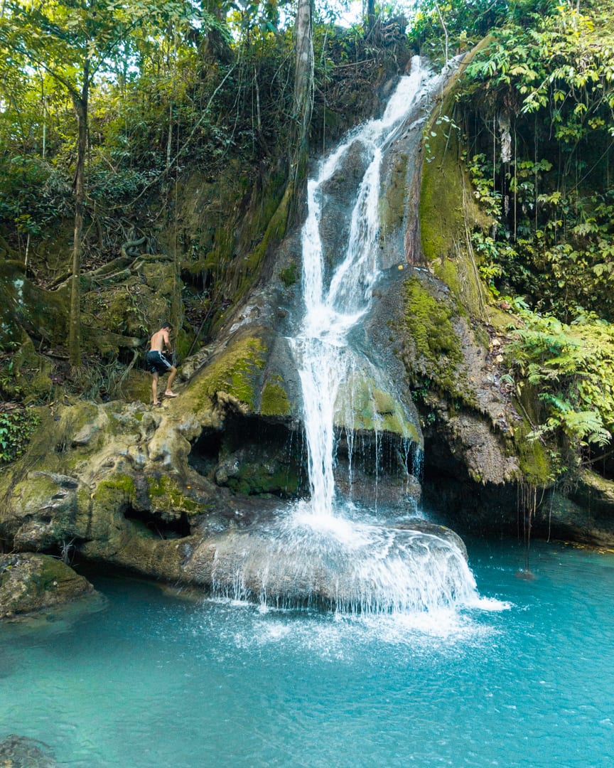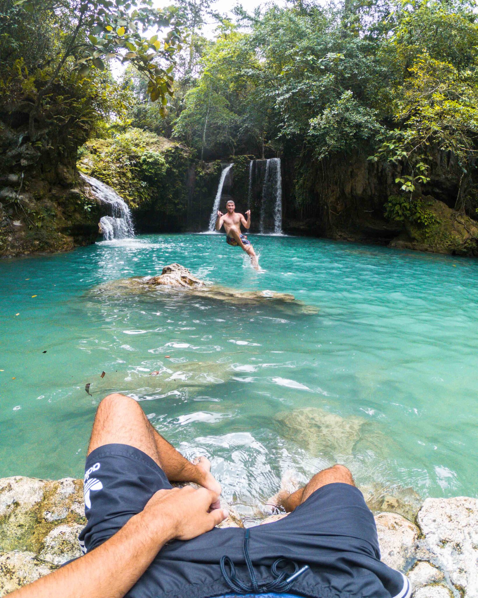 Een veel minder bekende waterval, waar we bijna alleen maar locals zagen, heet Cambais Falls. Je komt er langs op weg naar Osmeña Peak en is een leuke tussenstop. Vooral als je jonge Filipijnse kerels de waterval ziet beklimmen, waarna ze van een meter of 20 het water induiken (te zien in het filmpje onderaan het artikel). Ook hier heb je meerdere lagen, hoe hoger je komt hoe minder mensen. Wat je het gevoel geeft dat je alles zelf voor het eerst aan het ontdekken bent. Een ontdekkingsreiziger gewapend met een rugtas en een paar slippers.