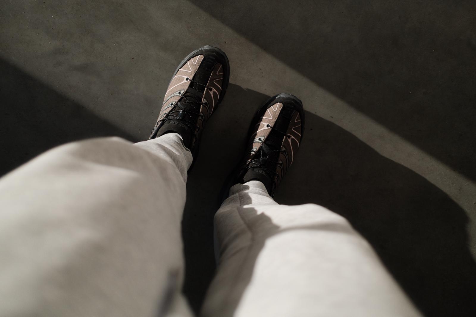 Wat direct opvalt is de materiaalkeuze. De combinatie van technische materialen en geborduurde details geeft de schoen een luxe uitstraling die je niet snel bij een standaard trailschoen ziet. Dankzij het GORE-TEX Invisible Fit membraan hoef je je geen zorgen te maken over een regenbui, modderig pad of een diepe plas. Je voeten blijven kurkdroog, terwijl de schoen toch blijft ademen. Het is de ideale sneaker voor wie direct van kantoor het bos in wil lopen of voor degene die graag een outdoor statement op kantoor wil maken.