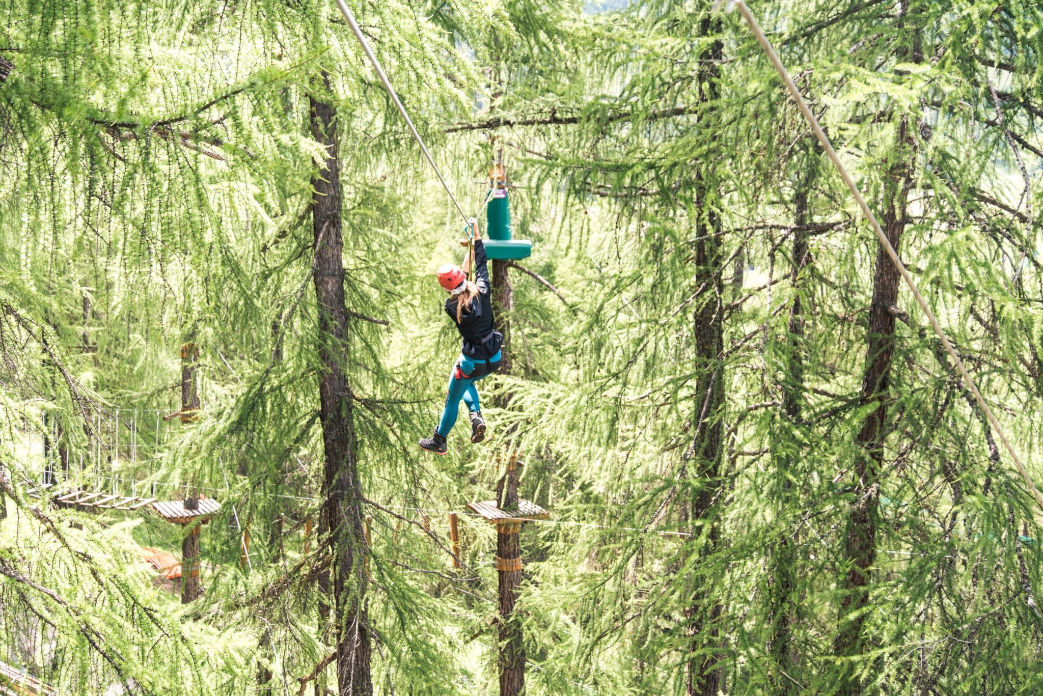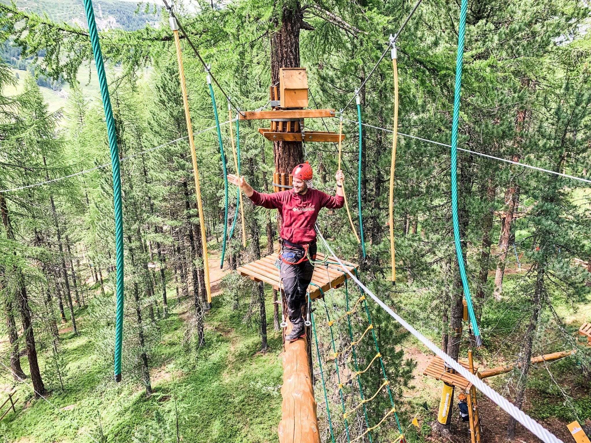 Behalve fietsen, kun je in Livigno natuurlijk ook super goed hiken. Toch besloten wij om eens een ander soort trail te gaan doen. Een fun trail dit keer. Eentje waarbij je moet ziplinen, balanceren, springen en klauteren. En dat dan meters hoog boven de grond, tussen de bomen in het Larix Park. In het Larix Park vind je zeven verschillende routes. Van makkelijk tot erg uitdagend. Leuk voor kinderen, maar zeker ook heel tof voor volwassenen. En denk er niet te makkelijk over, want ondanks dat je altijd veilig bent gezekerd, zijn de paarse en zwarte route echte uitdagingen. Je balans, inventiviteit en moed worden aardig op de proef gesteld. Maar die uitdaging maakt het natuurlijk wel echt tof om te doen. Een echte aanrader voor jong en oud!