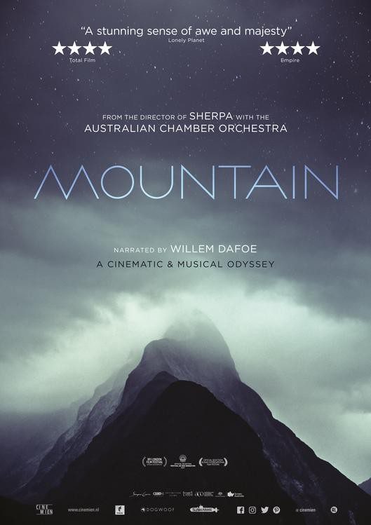 Mountain is gebaseerd op het boek ‘Mountains of the Mind’, geschreven door Robert Macfarlane. Het verhaal wordt verteld door Oscarwinnaar Willem Dafoe. Zijn prachtige stem maakt het verhaal al fantastisch fascinerend. Maar de echte betovering wordt toegevoegd door The Australian Chamber Orchestra. Zij omlijsten de film met werken van niet de minste componisten. Denk aan Beethoven, Chopin en Vivaldi. Kortom: een grote aanrader om te gaan zien. Schiet wel op, want de film draait niet meer zo lang in Nederland.