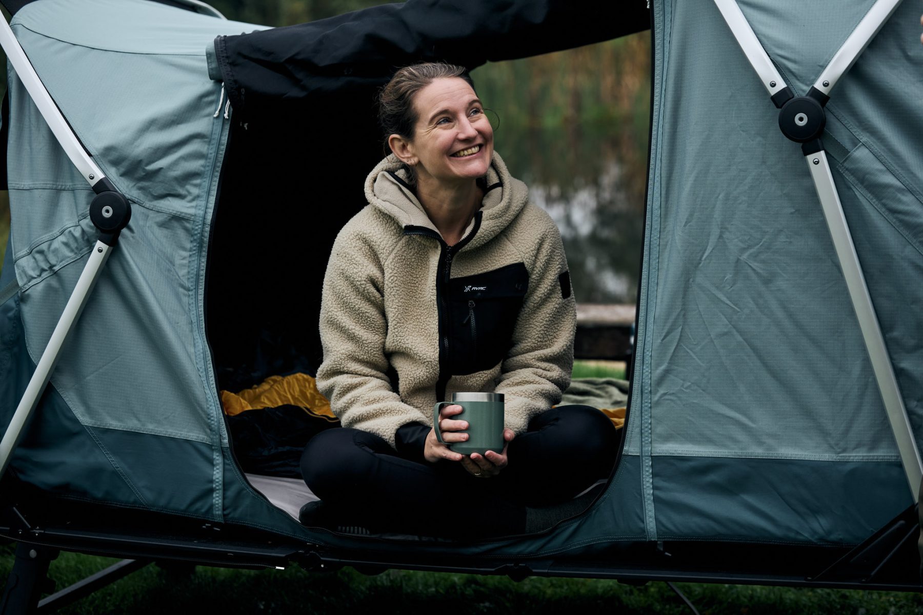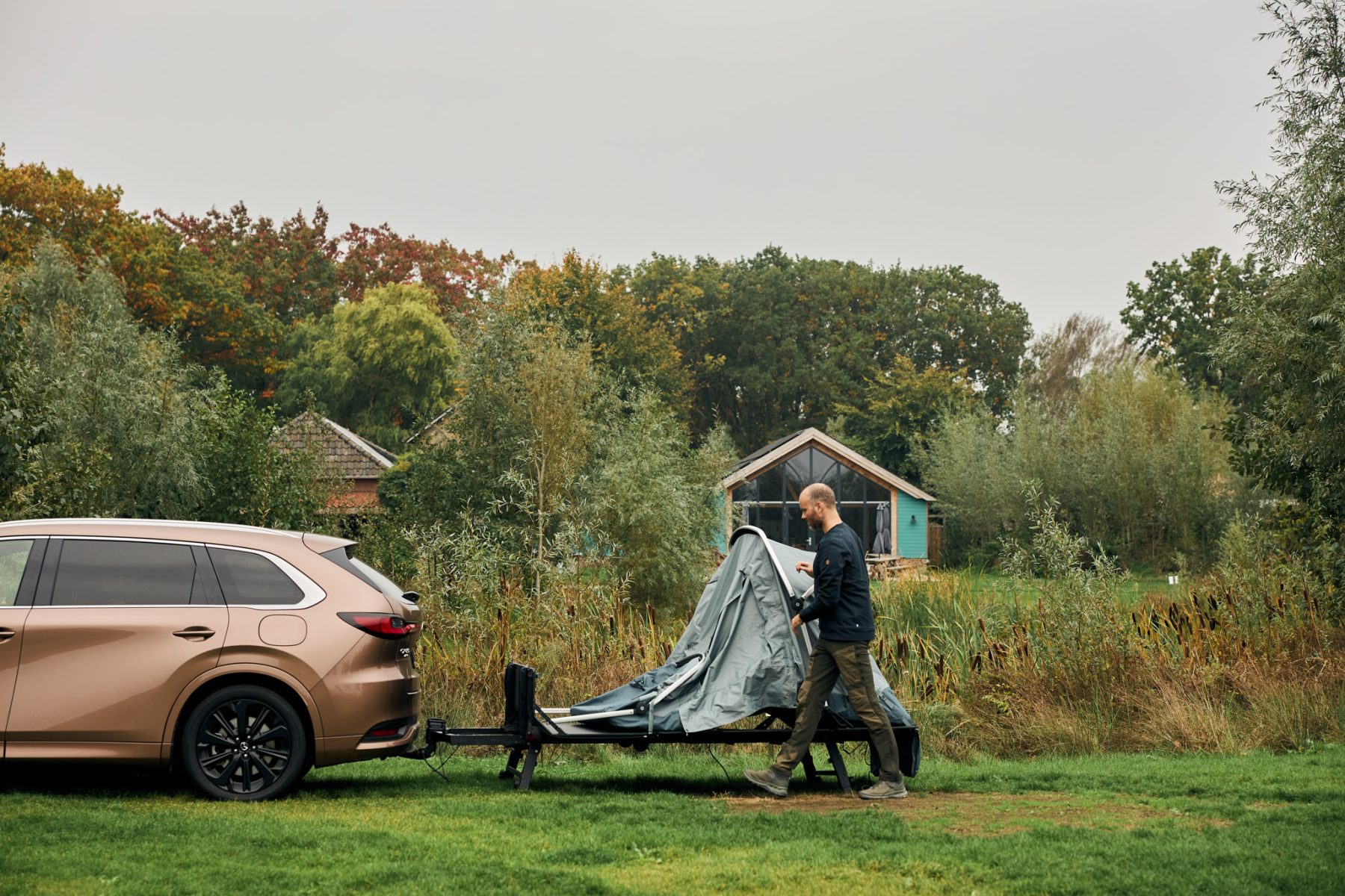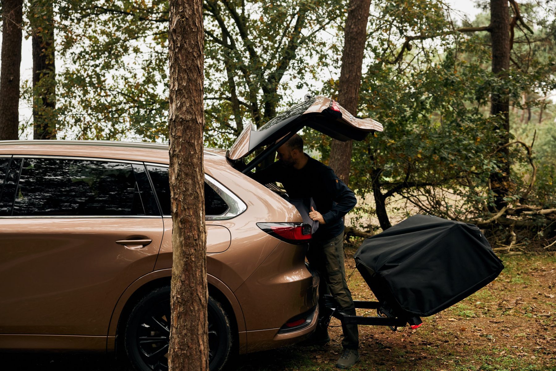 Kamperen kan altijd en het hele jaar door. Helemaal als een tent opzetten een fluitje van een cent is. We koppelen de Thule Outset achter de Mazda CX-80 en rijden naar een natuurcamping in Nederland. Terwijl de herfstzon zijn best doet om ons op te warmen, klappen we het compacte pakket uit tot een volwaardige kampeerplek. Nog geen kwartier later zitten we met een mok koffie bij het kampvuur. Geen stokken, geen struggles met tentzeilen en daardoor geen stress. Dat maakt kamperen met de Thule Outset een feestje. De Thule Outset is geen daktent en ook geen caravan. Het is iets ertussenin: de eerste tent ter wereld die je op de trekhaak van je auto monteert. En dat blijkt in de praktijk een gouden zet.