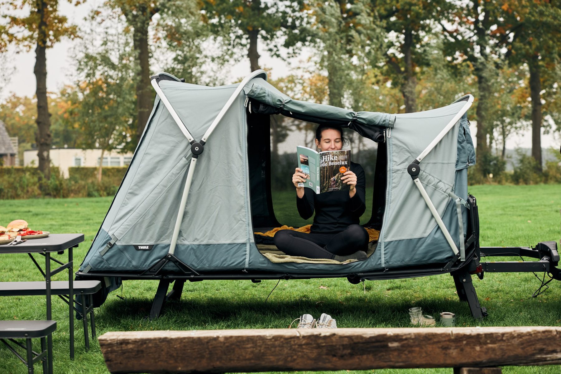 Thule levert ondertussen ook handige accessoires die de Outset nog veelzijdiger maken. De Starset Tarp is een luifel of losstaande tarp die je beschermt tegen zon of regen. De Outset Organizer helpt je om schoenen en spullen netjes op te bergen. En de eerdergenoemde Mattress Topper maakt van de slaapruimte een beter bed. Kleine toevoegingen, maar ze maken het verschil tussen, zoals de schoonvader het zegt, kramperen en kamperen.