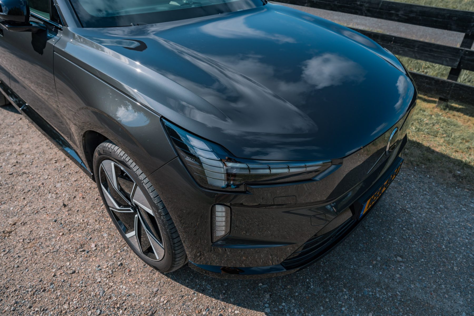 De EX90 is groot. Heel groot. Ruim 5 meter lang en 2 meter breed. Liever iets kleiner, dan is de EX40 iets voor jou. De auto is typisch Scandinavisch: robuust en tegelijk verfijnd. Hij straalt iets rustgevends uit, alsof hij zegt: kom maar, ik breng je overal heen. Van de stad in Nederland, tot de zandwegen in de Ardennen en bergpassen in Oostenrijk, hij oogt op zijn plek. Het interieur is minimalistisch Scandinavisch, met duurzame materialen en een enorme dosis comfort. Het panoramadak geeft onderweg dat typische outdoorgevoel: rijden met uitzicht op lucht, wolken en bergtoppen. “Kijk pap, een vliegtuig”.